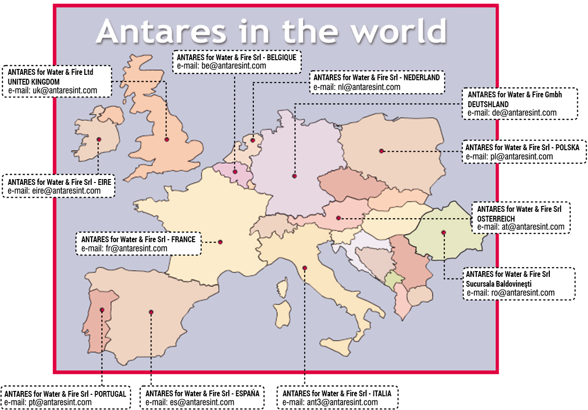 Sur la carte présente sur cette page, sont représentés les pays dans lesquels Antares est présente avec ses sièges.