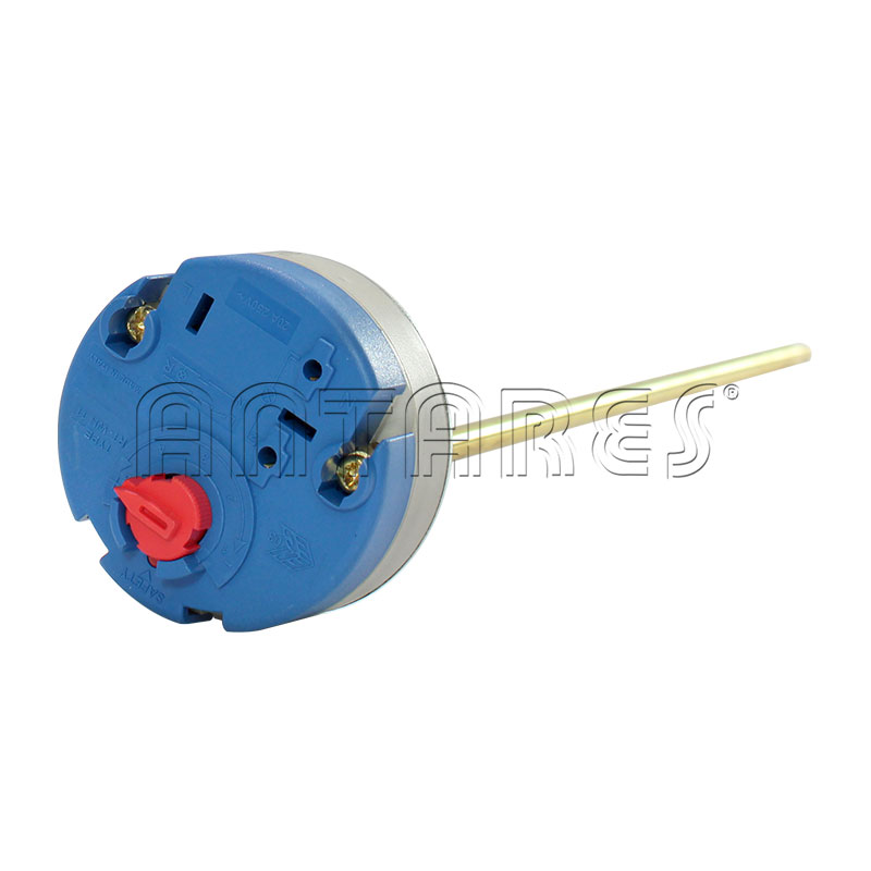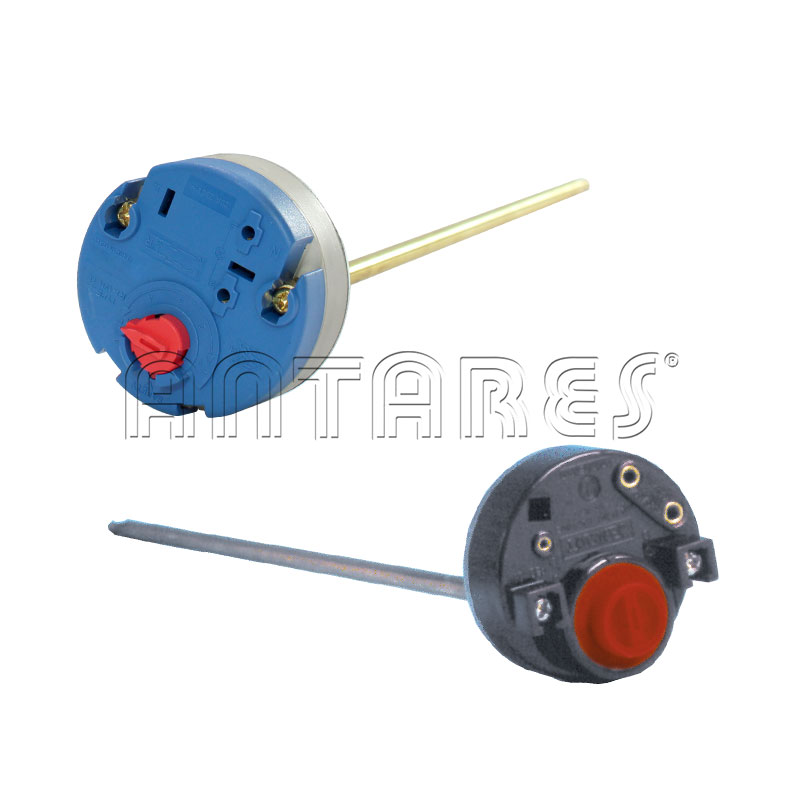 Termostato unipolare a gambo rigido per corrente monofase 15 A - 230 V, con attacco Faston per innesto nella resistenza (Art. C.030 - C.031). Scala: 10° - 70° C - Lunghezza gambo 280 mm.