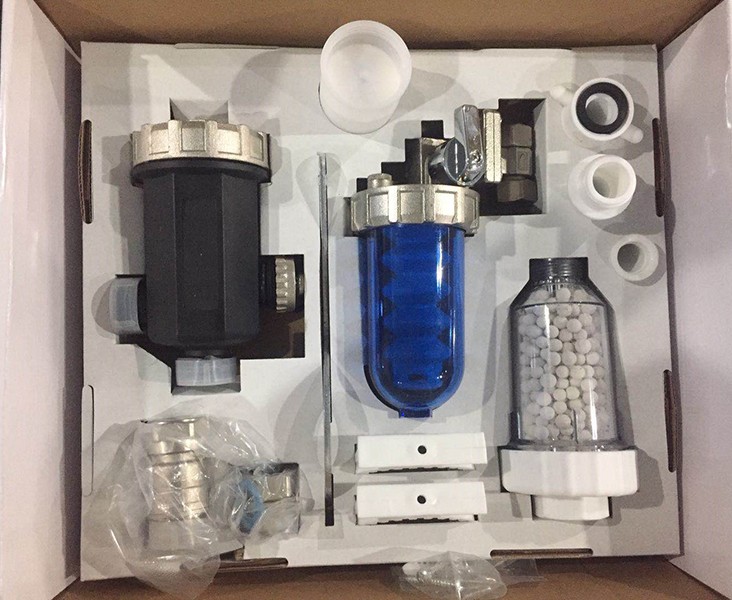 C.200 Zestaw ochrony kotła składający się z: • 1 dozownik polifosforanów z wkładem (Art. C.103.32) • 1 separator zanieczyszczeń (Art. C.085.03) • 1 filtr neutralizujący kwasowość (art. C.110.02)