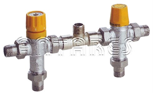 C.051 Mieszacz termostatyczny do instalacji sanitarnych. Temp. Max .: 85°C Regulacja: 30°C -65°C. Zawory zwrotne, które można dołączyć poprzez Art. P.002.